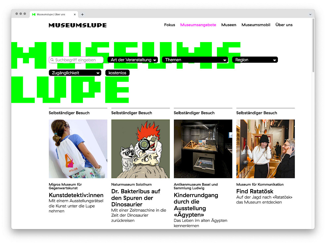Die Museumslupe lädt dazu ein, Museen als Orte der Gemeinschaft zu entdecken. Sie vertritt über 60 Museen in der Schweiz, die sich für kulturelle Teilhabe und Inklusion einsetzen.