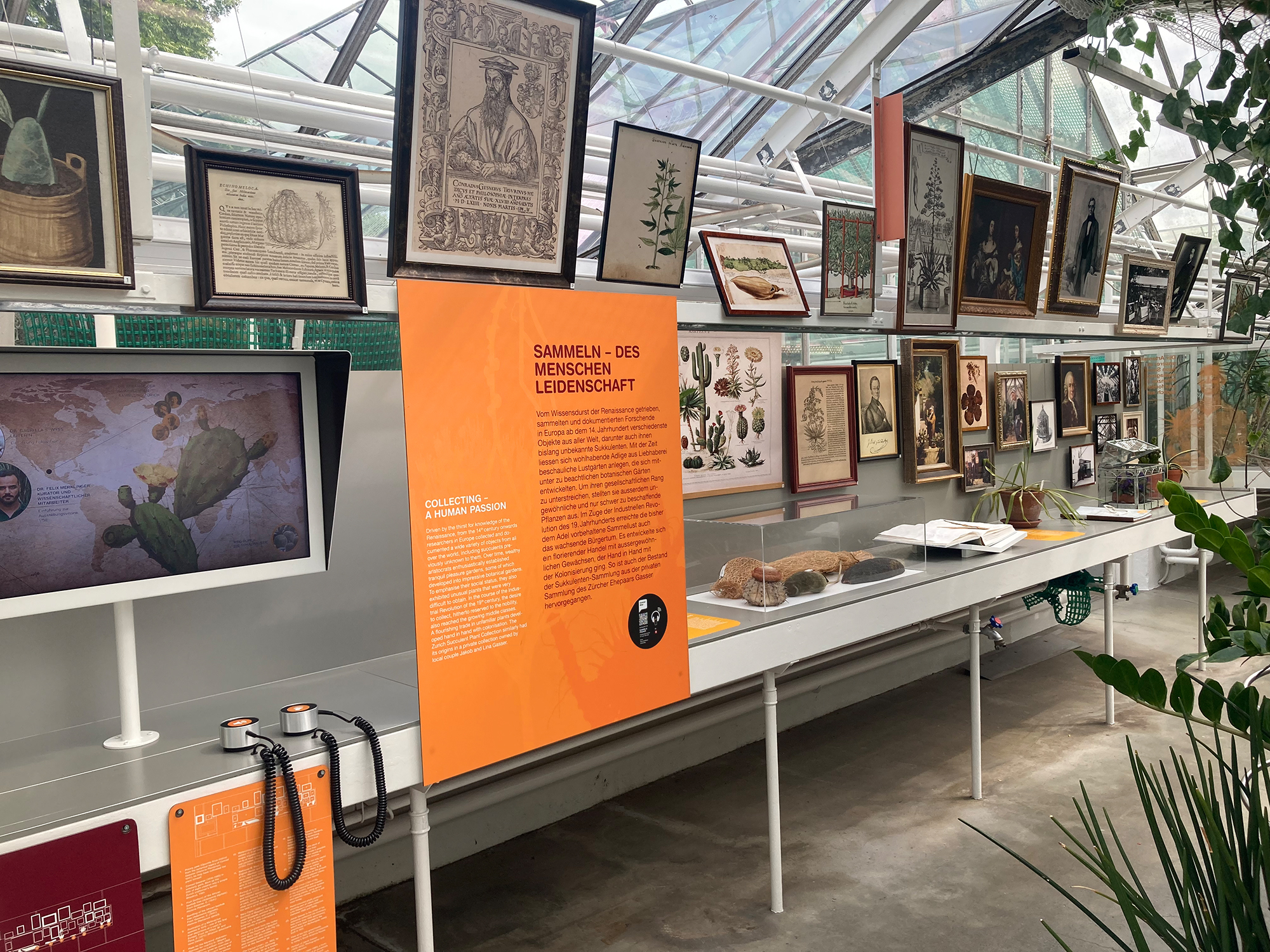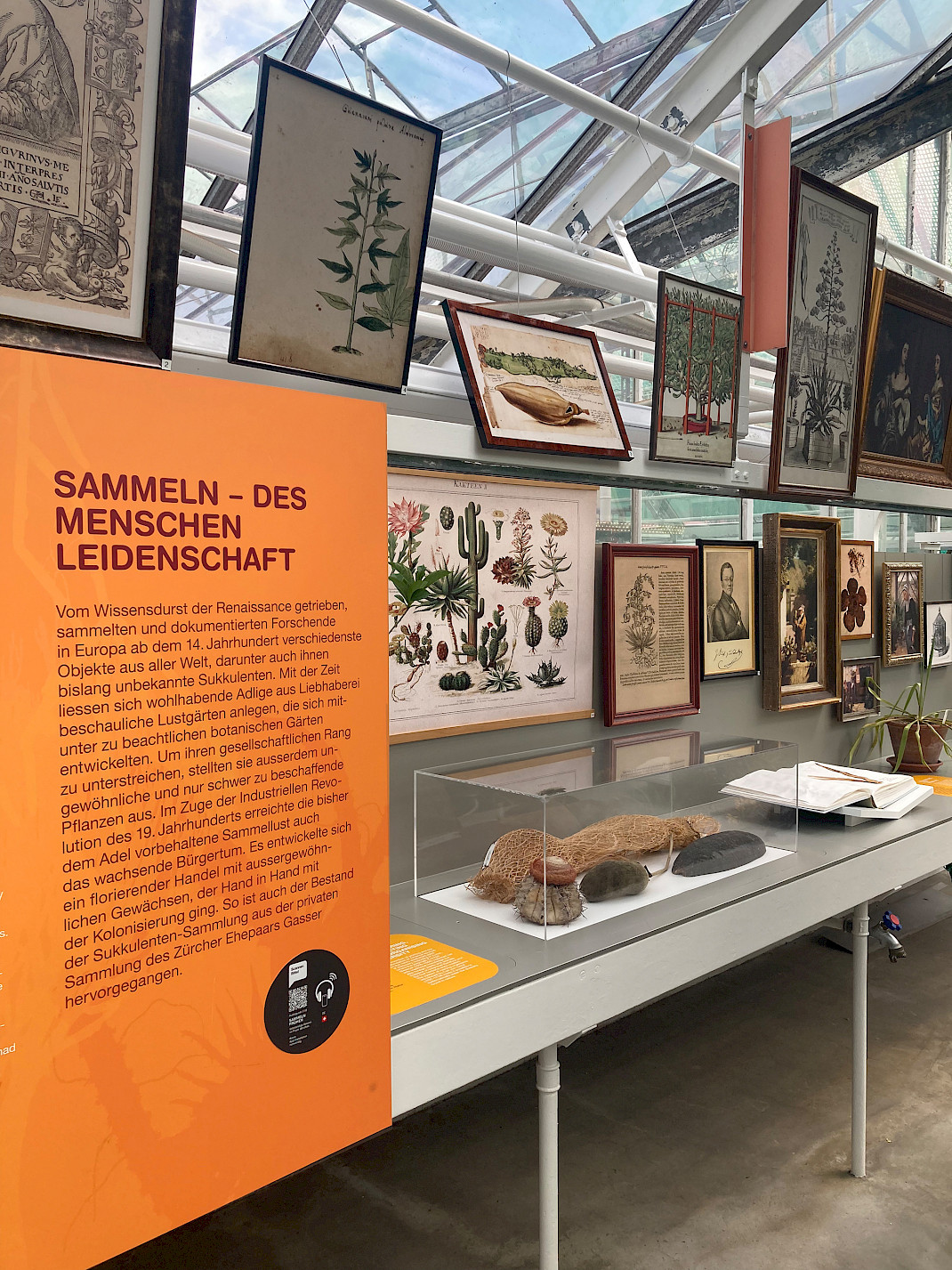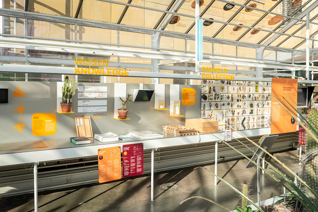 Im Afrikahaus steht die Geschichte des Sammelns im Mittelpunkt. Eine Assemblage aus Fotografien und Gemälden inmitten der Pflanzen entführt in eine vergangene Zeit. Im Südamerikahaus wiederum wird die aktuelle Tätigkeit der Sukkulenten-Sammlung präsentiert, insbesondere deren vielfältige Forschungsaktivitäten wie auch die internationale Vernetzung und Zusammenarbeit mit anderen Institutionen.